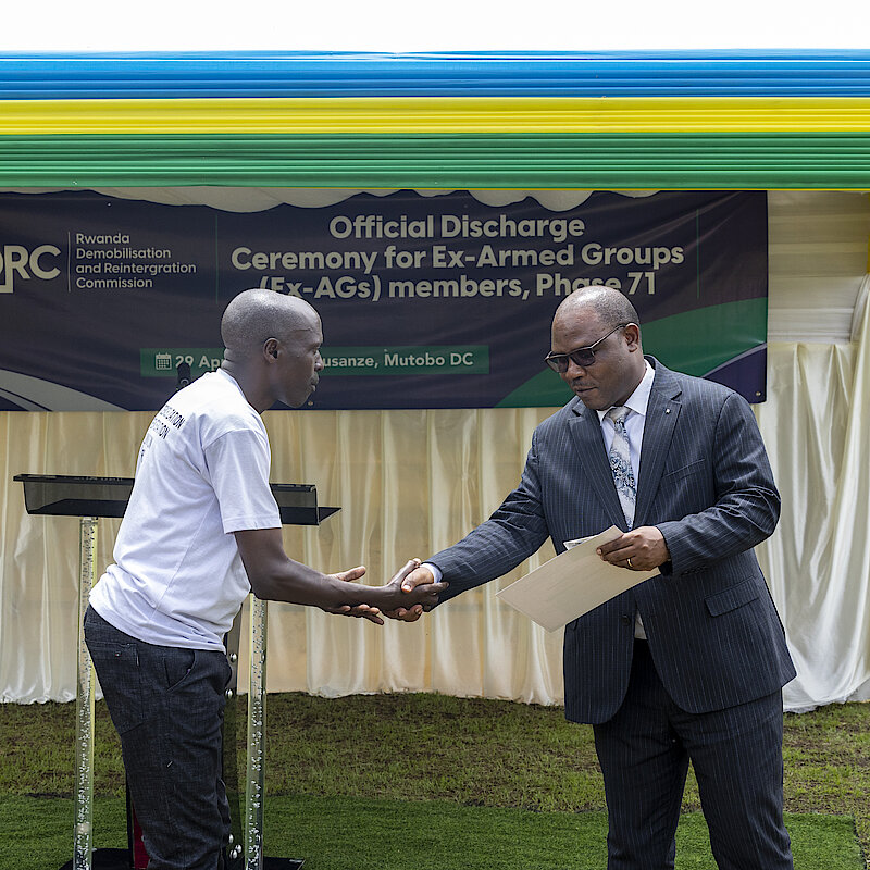 In a significant step towards peace-building and reintegration efforts, the Rwanda Demobilization and Reintegration Commission (RDRC) conducted the Official Discharge Ceremony for Ex-Armed Group Members (Ex-AGs), Phase 71, at the Mutobo Demobilization Centre on 29 April 2024.
